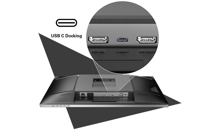 Simplifiez les connexions avec un câble unique. La connexion USB-C offre un mode alternatif DisplayPort pour transférer des signaux vidéo haute résolution entre un ordinateur portable et le moniteur en chargeant simultanément la batterie de l’ordinateur depuis l’alimentation électrique du moniteur.