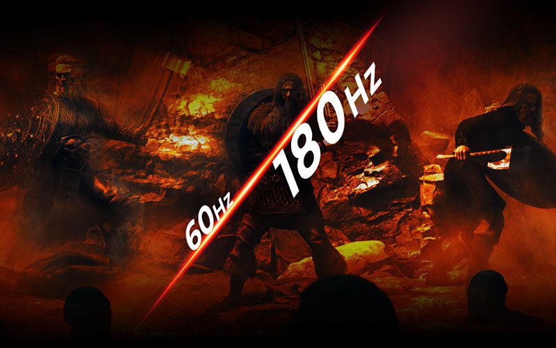 Les jeux compétitifs et intenses exigent la meilleure technologie pour garantir un jeu plus fluide et sans décalage. Ce moniteur AOC dispose d’un taux de rafraîchissement de 180 Hz, ce qui le rend 3 fois plus rapide qu’un écran standard. Une fréquence d’images plus faible peut donner l’impression que les ennemis sautent d’un endroit à l’autre sur l’écran, ce qui en fait des cibles très difficiles à atteindre. Une fréquence d’images de 180 Hz restaure les images manquantes critiques sur l’écran, révélant les mouvements de l’ennemi dans un mouvement ultra-fluide, vous permettant de cibler plus facilement.