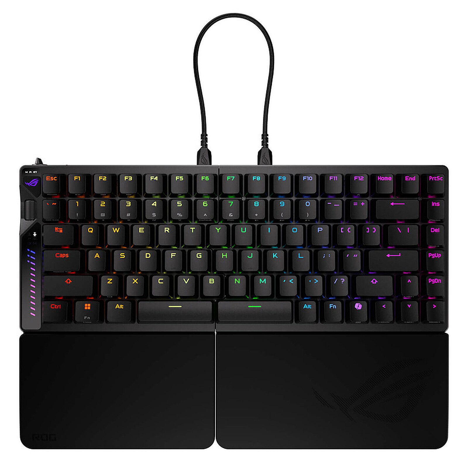 Le ROG Falcata redéfinit les standards du clavier gaming grâce à son format compact 75% et à son design scindable, des atouts majeurs pensés pour la performance et le confort. Sa conception modulaire permet aux joueurs d’utiliser uniquement le module gauche, libérant ainsi un précieux espace pour les mouvements de la main dominante. Cette flexibilité, couplée aux repose-poignets en silicone détachables et inclinés, garantit une expérience de jeu ergonomique et durable, même lors de longues sessions. Le Falcata ne se contente pas d’offrir un confort physique : ses interrupteurs ROG HFX V2 magnétiques hot-swappables et son capteur Hall de nouvelle génération offrent une précision de frappe millimétrée, avec une course d’activation réglable au dixième de millimètre près.