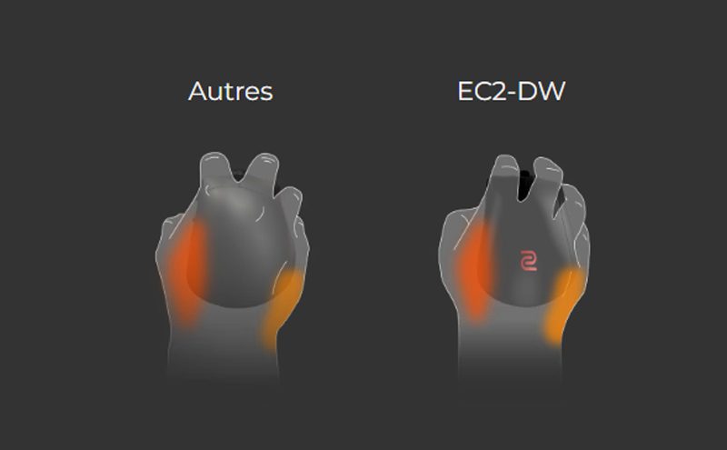 Conçue pour répondre à votre besoin, à savoir une souris adaptée à votre main, l’EC2-DW profite de la meilleure maniabilité possible et d’un confort incroyable. Ainsi, retrouvez cette forme ergonomique asymétrique si astucieuse développée par BenQ Zowie. Le design arrondi et courbé de l’EC évite toute pression gênante sur la paume, contribuant ainsi à réduire la fatigue musculaire lors d’une utilisation prolongée.
