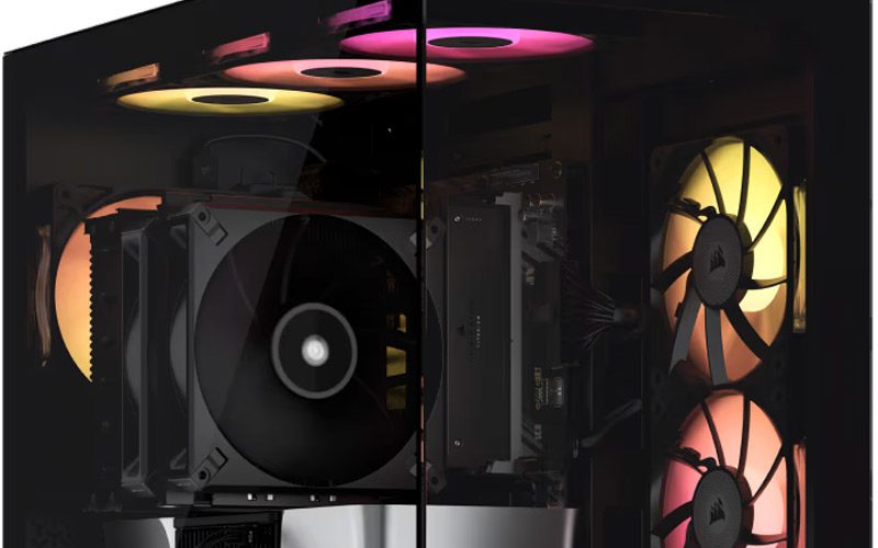 Le boîtier moyen Tour Corsair 3500X ARGB offre une superbe vue panoramique de votre configuration à travers ses deux faces en verre trempé. Cette vitrine ne serait rien sans un système de refroidissement aux multiples possibilités, grâce à dix emplacements pour ventilateurs de 120 mm (3 ventilateurs RS120 ARGB préinstallés) et la prise en charge de radiateurs de 360 mm sur le côté et en haut. Le 3500X ARGB de Corsair est par ailleurs compatible avec les cartes mères ASUS BTF et MSI Project Zero, dissimulant ainsi vos câbles et branchements.