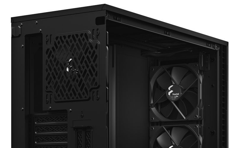 Pour le bien-être de vos équipements, le boîtier Define 7 possède un refroidissement optimisé avec pas moins de neuf emplacements pour ventilateur 120/140 mm. Trois ventilateurs de 140 sont pré-installés pour commencer votre expérience Fractal Design dans les meilleures conditions. Bien évidemment, ce modèle est compatible avec un système watercooling pour répondre à toutes vos envies.