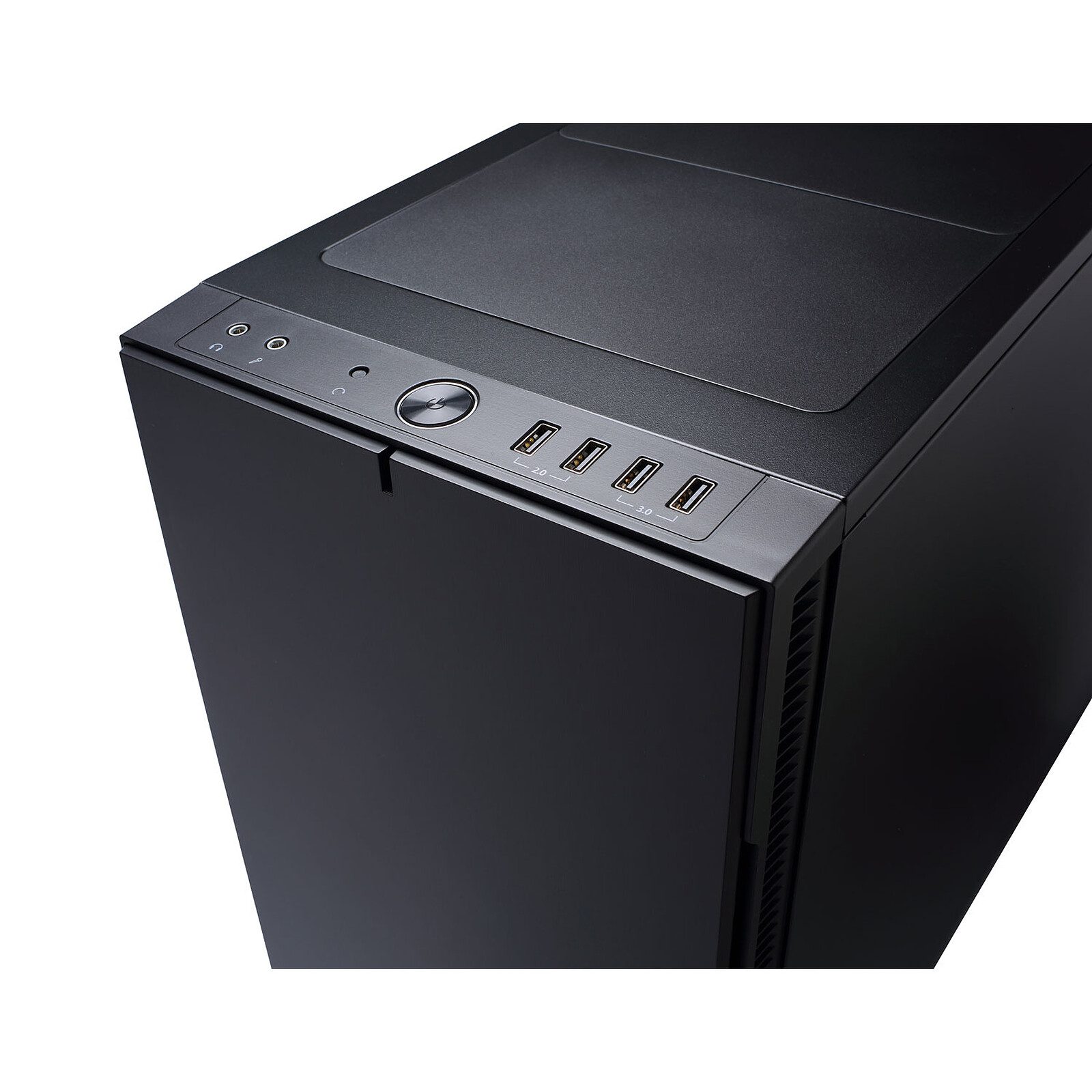 Il est équipé des nouveaux couvercles de fentes de ventilateur « sans outils » ModuVent. L’utilisateur peut installer des ventilateurs supplémentaires, ou recouvrir les fentes pour un maximum d’insonorisation. Le boîtier est fourni avec deux ventilateurs Fractal Design Dynamic GP14 de 140 mm, conçus pour fournir une circulation d’air superlative avec un minimum de bruit. La commande des ventilateurs, à trois vitesses, est stratégiquement intégrée au panneau frontal et peut prendre en charge jusqu’à trois ventilateurs.