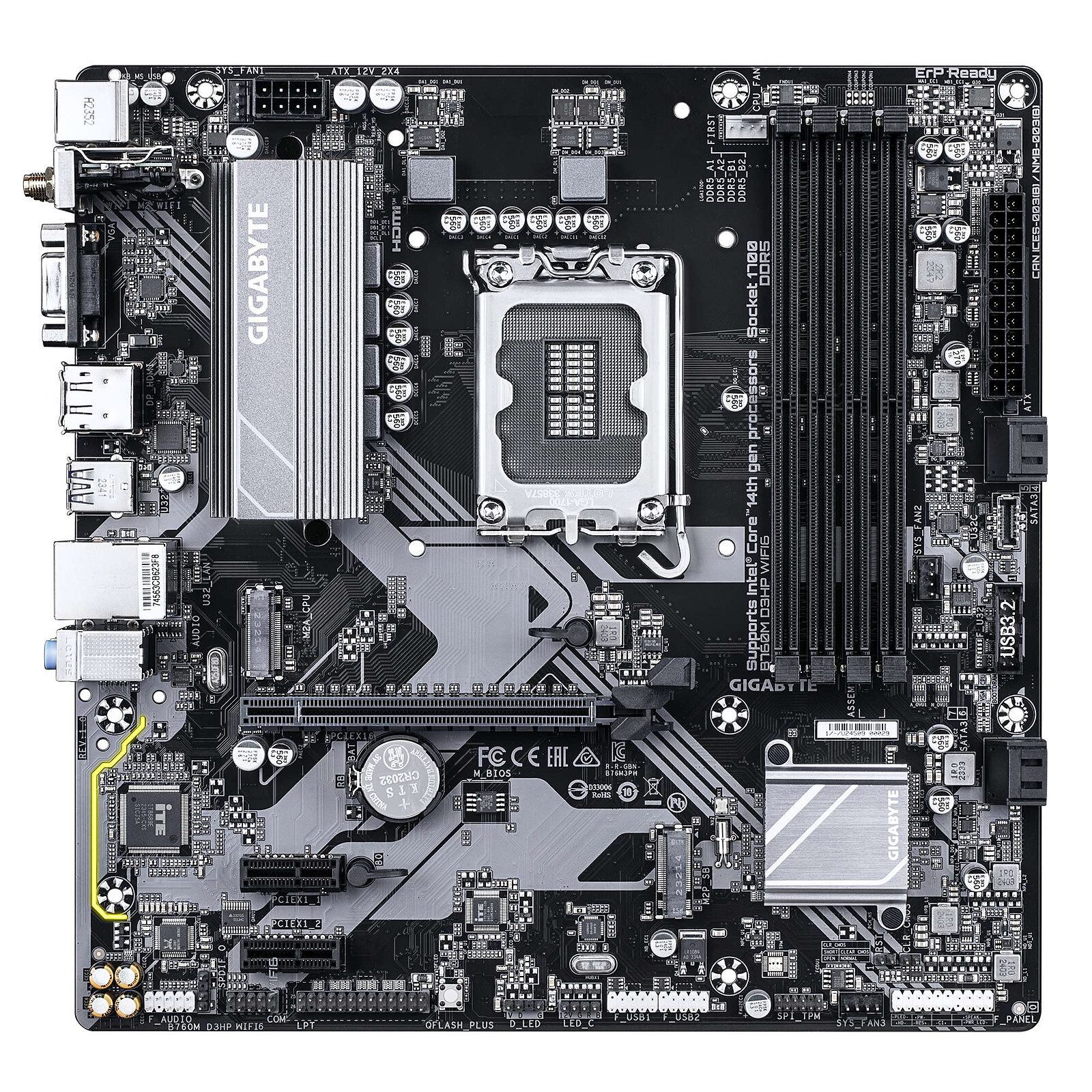 La carte mère Gigabyte B760 D3HP WIFI6 conçue pour les processeurs Intel Core hybrides de 12ème, 13ème et 14ème génération est idéale pour l’assemblage d’une configuration puissante au coût maitrisé. Elle prend en charge les processeurs Intel Core 12ème, 13ème et 14ème génération, les cartes graphiques PCI-Express 4.0 16x, les SSD M.2 PCIe 4.0, la RAM DDR5 ainsi que les périphériques USB 3.0.