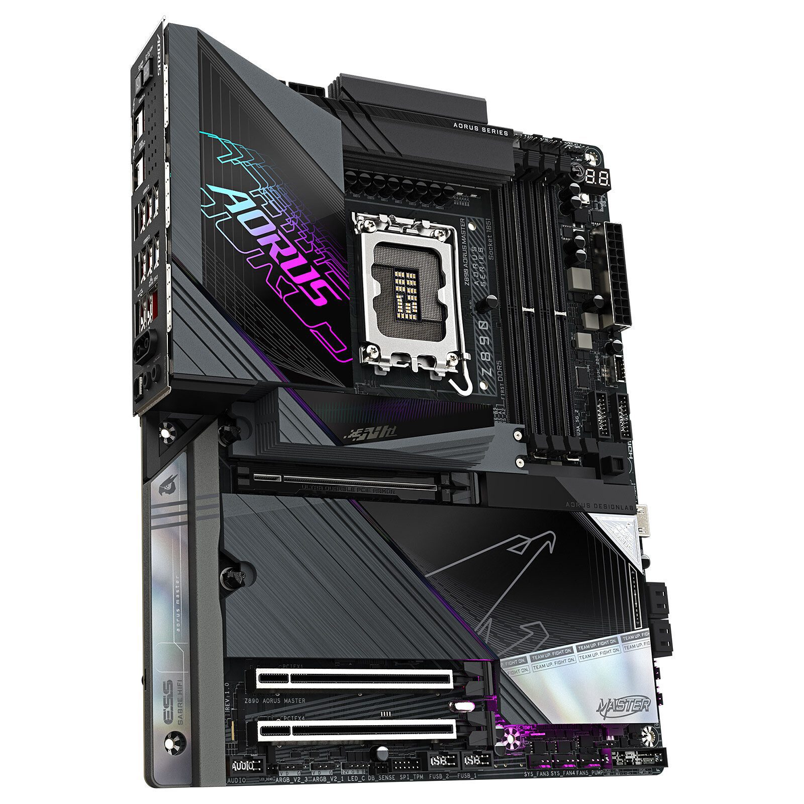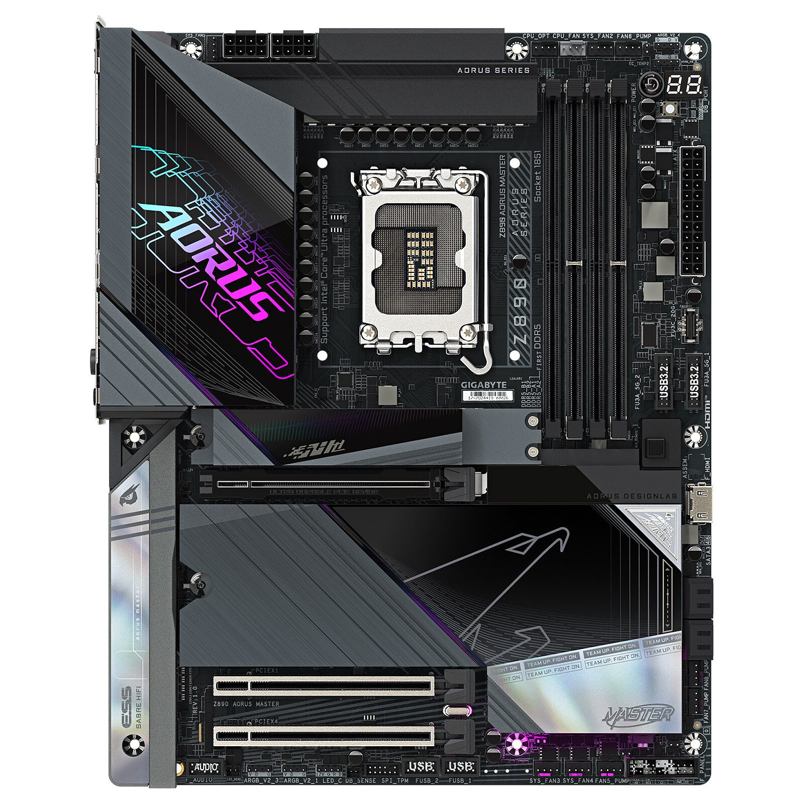 Embarquant le chipset Intel Z890, la carte mère Gigabyte Z890 AORUS MASTER sera la pierre angulaire de votre configuration gaming. Dotée du socket Intel LGA1851, la Z890 AORUS MASTER prend en charge les processeurs Intel Arrow Lake-S boostés à l’IA. Concernant la connectique, cette carte mère Gigabyte au format ATX propose le PCI-Express 5.0 16x pour votre carte graphique, prend en charge les SSD M.2 PCIe 4.0/5.0 pour un système réactif et des temps de chargements réduits ainsi que la RAM DDR5. Au niveau des périphériques, on retrouve de l’USB 3.1 et du Thunderbolt 4 tandis que la partie réseau est assurée par un connecteur LAN 10 GbE et du Wi-Fi 7/ Bluetooth 5.4.