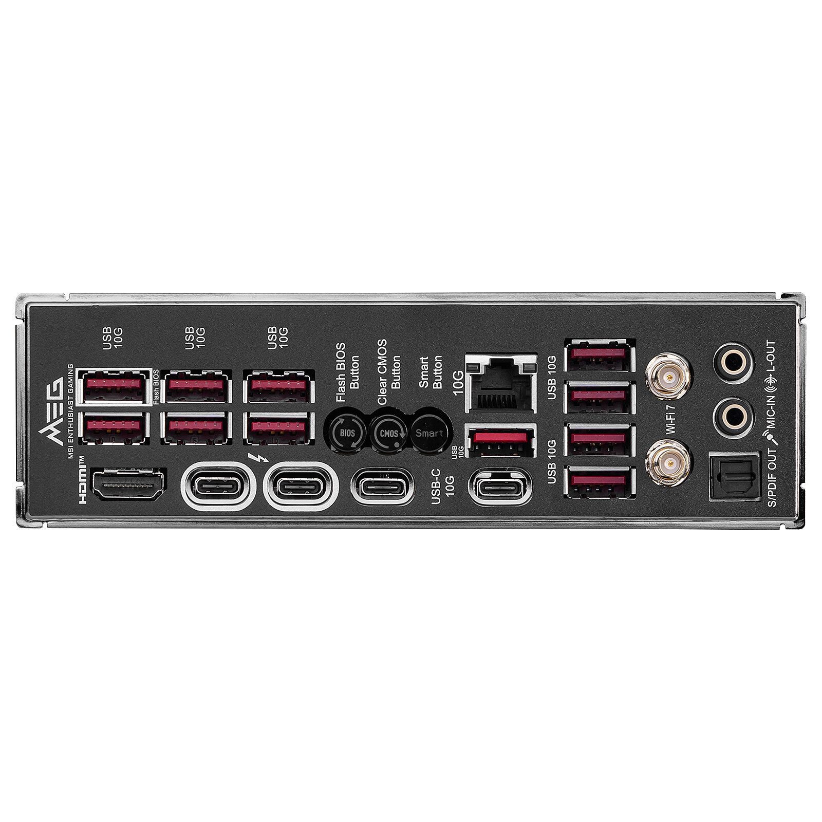 La carte mère MSI MEG Z890 ACE dotée du socket Intel LGA 1851 est en mesure d’accueillir les processeurs Intel Core Ultra Arrow Lake-S optimisés pour l’IA. Dotée d’une connectique de pointe, comme le Thunderbolt 4, la MEG Z890 ACE proposée par MSI propose par ailleurs deux emplacements PCI-Express 5.0 x16 et un slot M.2 PCIe 5.0 x4 afin d’accueillir les composants les plus véloces pour satisfaire les gamers les plus exigeants. Au niveau du réseau, rien ne manque puisqu’un connecteur LAN 10 Gbps est disponible en plus d’une connectivité sans fil de premier plan avec le Wi-Fi 7 et le Bluetooth 5.4.