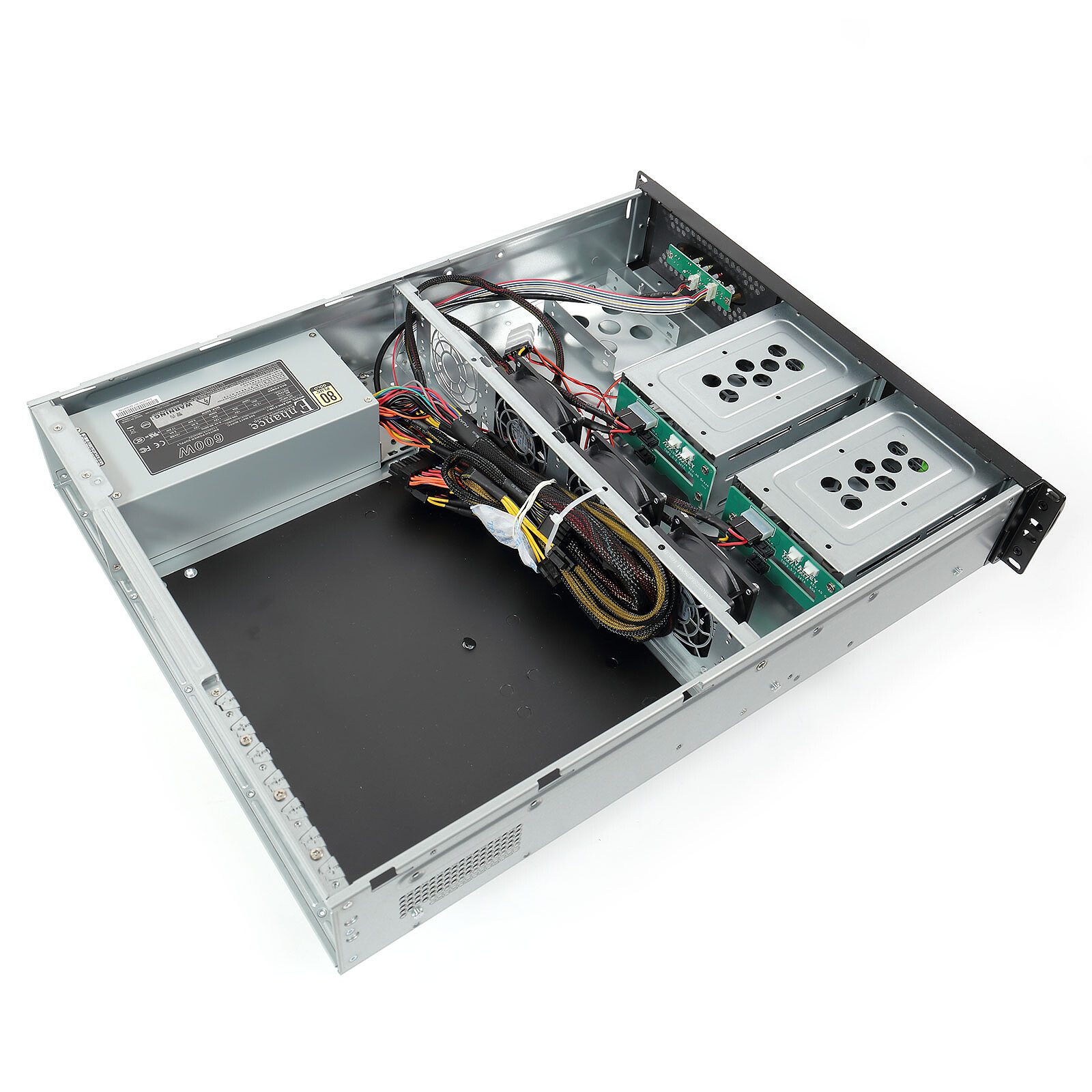 Le Textorm TXRC2U57-4HG est un boîtier rackable 2U 4 baies équipé d’une alimentation 600W 80 PLUS Gold. Les rails de fixation inclus permettent de l’intégrer rapidement dans un rack. Les 4 baies 3″1/2 hot swap accessibles en façade sont munies de chariots pour une intégration et une extraction rapide des disques durs SATA. Compatible avec les cartes mères ATX, il est idéal pour les entreprises souhaitant concevoir un serveur performant et fiable à prix accessible.