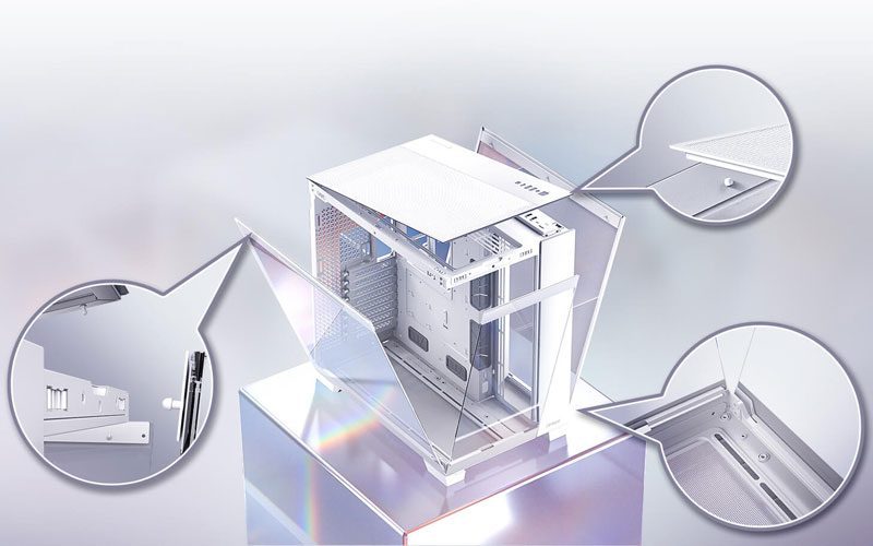 Avec une largeur accrue, le C8 peut accueillir des cartes graphiques jusqu’à 440 mm de longueur et des ventirads CPU jusqu’à 175 mm de hauteur. Il est compatible avec les formats de cartes mères E-ATX, ATX, Micro ATX et Mini ITX pour une grande flexibilité dans vos choix de composants. Pour une installation propre et organisée, le boîtier est équipé de quatre sangles Velcro préinstallées facilitant l’acheminement des câbles. Les panneaux latéraux peuvent être retirés indépendamment du panneau supérieur, simplifiant l’accès aux composants internes. De plus, la conception à deux chambres permet une séparation efficace des zones de chaleur, optimisant le refroidissement global du système.