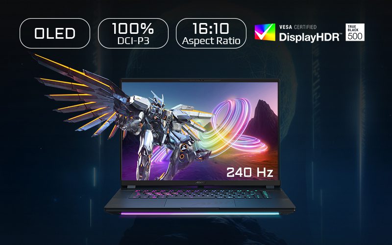 - Écran de 16″ au format 16/10 avec résolution QHD+ et fréquence d’affichage de 240 Hz
