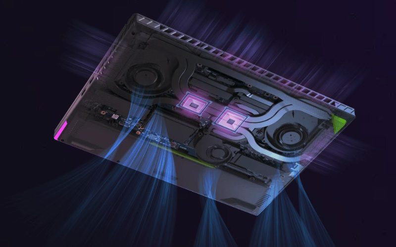 La philosophie du refroidissement intelligent ROG réside dans son alliance entre fonctionnalités utiles et paramètres système correctement ajustés pour garantir la meilleure expérience possible au niveau du châssis et des composants. Les performances du PC sont boostées grâce à l’utilisation d’une pâte thermique fabriquée à partir de métal liquide et appliquée directement sur le processeur. De plus, le design du châssis améliore la ventilation pour minimiser les niveaux de bruit en comparaison avec les générations précédentes.