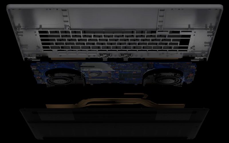 Le système de refroidissement ROG Intelligent Cooling regroupe un ensemble de composants qui travaillent en harmonie pour maintenir les ordinateurs portables hautes performances au frais et dans le silence. La chambre à vapeur du Zephyrus G16, la technologie Tri Fan, les ventilateurs Arc Flow de 2ème génération, le composé thermique en métal liquide et un conduit d’évacuation redessiné à haute efficacité fonctionnent en parfaite harmonie pour offrir l’équilibre parfait entre thermique et acoustique. Ensemble, ces systèmes permettent à la machine de fonctionner au maximum de ses capacités tout en restant plus silencieuse.