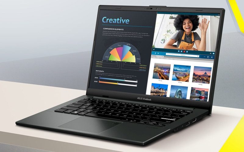 Le Vivobook 14 est doté d’une charnière à 180°, conçue avec précision, qui facilite le partage de contenu ou la collaboration avec d’autres personnes. Par ailleurs, le clavier ErgoSense d’ASUS offre une sensation plus satisfaisante, avec un rebond et un déplacement optimaux calculés avec une grande précision. Faites l’expérience du clavier ErgoSense pour être parfaitement à l’aise dans votre travail !