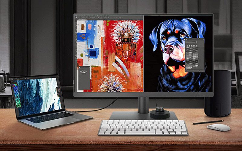 Le moniteur BenQ PD2706U intègre un port USB-C, un port HDMI et un connecteur DisplayPort pour connecter facilement jusqu’à deux écrans 4K et profiter d’une transmission des données accélérée. Il dispose également de 3 ports USB 3.0 et d’un second connecteur USB-C (pour le transfert de données uniquement).