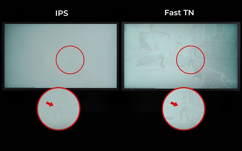 En comparaison avec une dalle IPS classique, une dalle Fast TN offre des contours plus précis et plus nets pour les images en mouvement, ce qui favorise la concentration et réduit la distraction due à l’image rémanente parasite issue des mouvements dans le jeu. La nouvelle dalle TN, parfaitement calibrée, réduit avec efficacité les dépassements (ou overshoot) pouvant être observés sur une dalle classique en raison d’une saturation excessive en cristaux liquides. Par ailleurs, la lumière blanche aveuglante s’estompe beaucoup plus rapidement qu’avec la technologie IPS, ce qui permet aux joueurs de voir les contours de l’ennemi plus tôt.