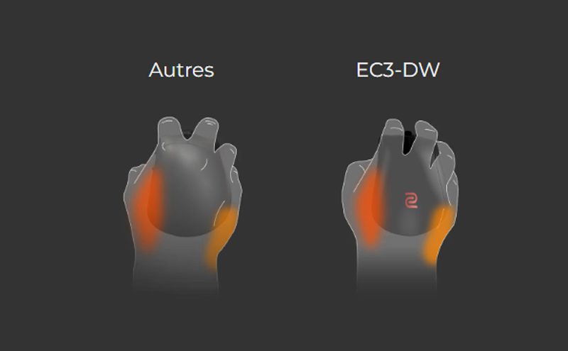 Conçue pour répondre à votre besoin, à savoir une souris adaptée à votre main, l’EC3-DW profite de la meilleure maniabilité possible et d’un confort incroyable. Ainsi, retrouvez cette forme ergonomique asymétrique si astucieuse développée par BenQ Zowie. Le design arrondi et courbé de l’EC évite toute pression gênante sur la paume, contribuant ainsi à réduire la fatigue musculaire lors d’une utilisation prolongée.