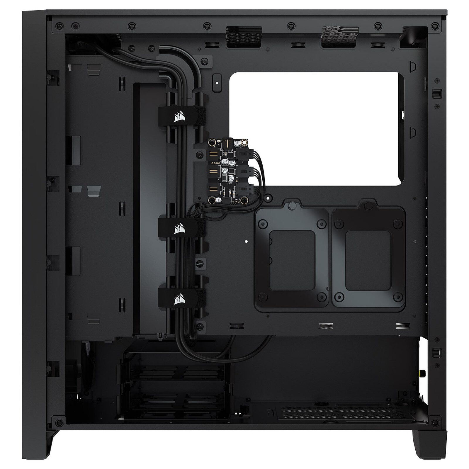 Le Corsair iCUE 4000X RGB Tempered Glass propose un câble management optimisé afin de favoriser un montage propre et rapide. Les câbles ne gênent pas la circulation du flux d’air et l’aspect visuel reste soigné.
