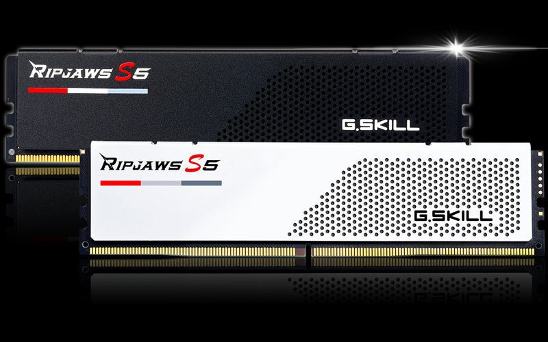 La série Ripjaws S5 de nouvelle génération adopte un design chromatique minimaliste inspiré des rayures et des grilles de course classiques, disponible en noir mat ou en blanc mat pour correspondre à une grande variété de thèmes de construction PC.
