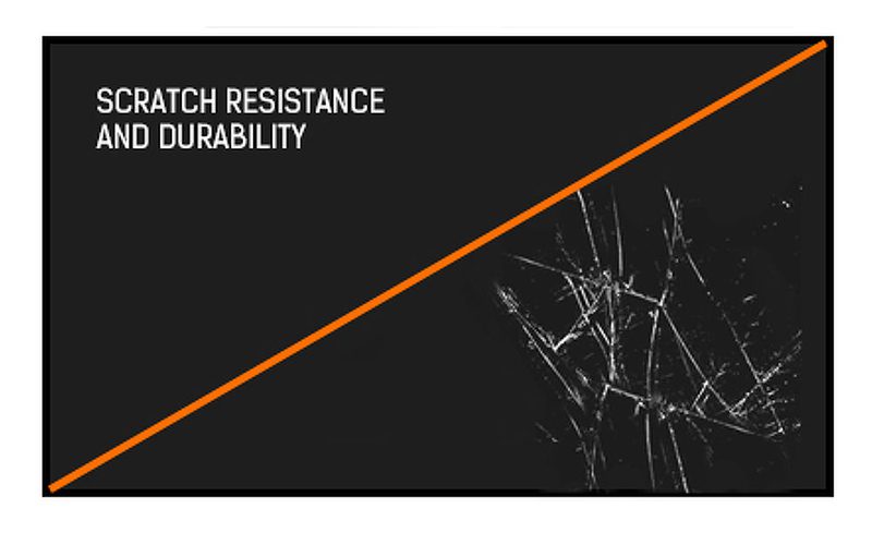 La résistance aux rayures est primordiale dans le cadre d’une utilisation de la fonction tactile dans les milieux publics. Ceci est possible grâce à une dalle de verre de protection qui recouvre la dalle de l’écran. Ceci garantit une grande durabilité de la fonction tactile et est encore plus important que la fonction tactile continue à fonctionner malgré le fait que le verre soit rayé.