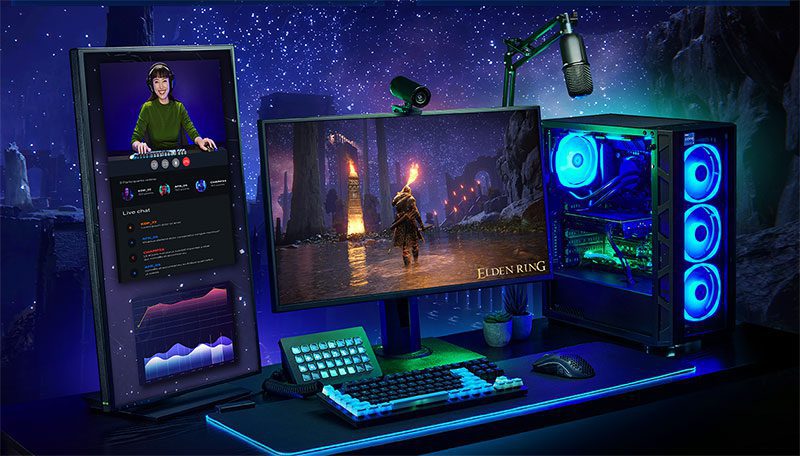 Les processeurs Intel Core de 13ᵉ génération pour PC de bureau offrent la plateforme la plus complète pour utiliser les technologies de gaming que vous voulez. La prise en charge de la DDR4 et de la DDR5 vous offre le choix de la configuration de la mémoire. La prise en charge de la technologie Thunderbolt 4 offre un moyen simple et rapide de connecter des périphériques. Poussez votre machine plus loin que le max : Overclocking amélioré sur les deux ensembles de cœurs pour des performances à votre niveau. Vous pouvez jouer et streamer en même temps, autant que vous voulez.