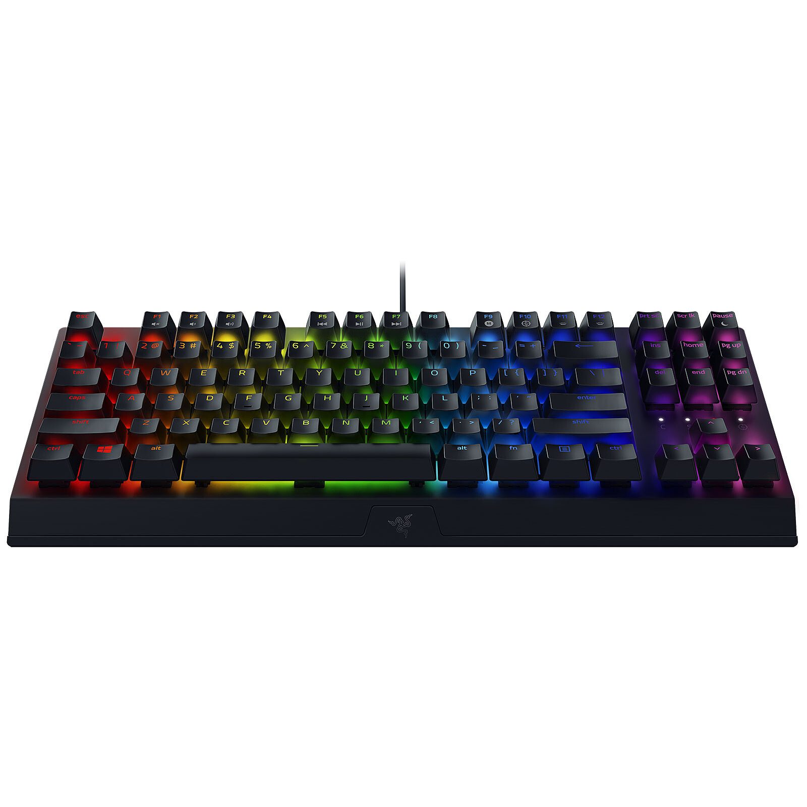 Conçu spécifiquement pour le jeu, le Razer BlackWidow V3 TKL est un clavier compact armé de switches Razer Green afin de vous offrir une exécution précise avec une sensation tactile. Prenez ainsi facilement le dessus sur vos adversaires lors de duels. De plus, avec son rétroéclairage RGB Chroma, affichez fièrement vos couleurs ou immergez-vous plus facilement dans vos jeux.