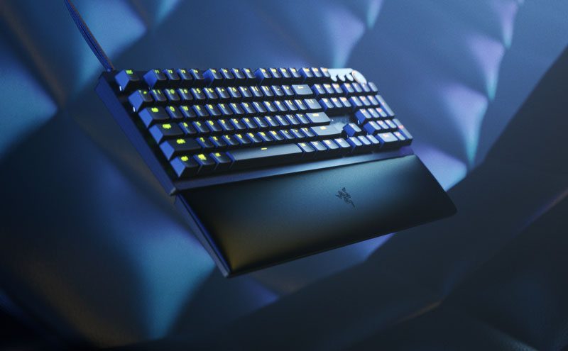 Le Razer Huntsman v2 vous fait profiter de frappes rapides et ultraprécises qui vous caressent les oreilles et qui sont plus légères que les switchs mécaniques traditionnels tout en offrant un polling rate pouvant atteindre 8 000 Hz pour une latence d’entrée plus basse.