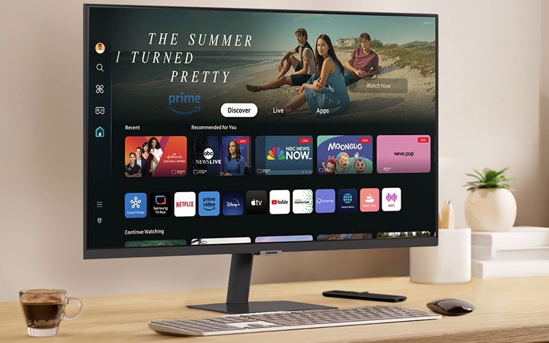 L’écran hybride Samsung Smart Monitor M7 S43FM702UU est un modèle 2-en-1 qui offre une expérience 4K HDR10 sur une dalle VA de 43 pouces. Idéal pour travailler sans avoir besoin de PC et pour se divertir, il intègre le Wi-Fi, le Bluetooth, Microsoft 365 et Tizen OS et permet d’accéder via le Smart Hub aux plateformes de streaming et à de nombreuses applications.