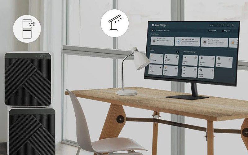 Transformez votre Smart Monitor en centre de contrôle pour la maison en le connectant à vos produits domestiques IoT avec SmartThings. Éteignez les lumières, baissez les stores et réglez le thermostat à la température idéale, le tout à l’aide du Smart Monitor. La soirée s’annonce détendue !