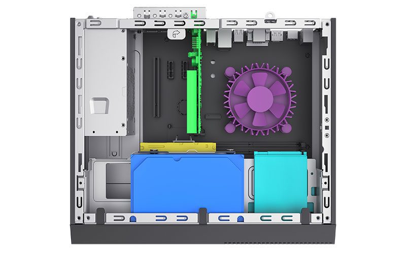 Le Textorm TB2 est un boîtier compact Mini Tour qualitatif. Idéal pour l’intégration, il est doté d’une alimentation 250W 80PLUS Gold, de 4 slots PCI Low Profile, d’emplacements disque (2.5″ et 2.5/3.5″), d’une baie pour lecteur optique slim et de connecteurs en façade (dont 1 ports USB 3.0 et 1 port USB-C). Avec un volume de seulement 8.3 litres, il propose un encombrement minimal et de nombreuses possibilités d’installation (Desktop, Tour, sur ou sous un bureau…etc.). Sa conception de qualité et son format compact le rendent particulièrement adapté au monde de l’entreprise. Sa simplicité et son design sobre et compact raviront également familles et étudiants à la recherche d’un produit facile à intégrer dans un salon ou une chambre.